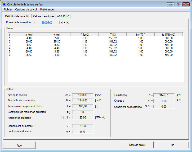 L'onglet Calculs BA définit les options de calculs et de présentation des résultats BA.