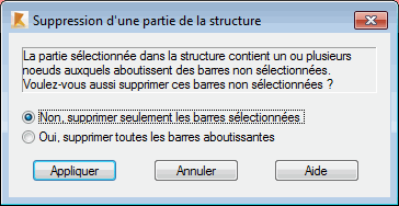 Supprime les barres sélectionnées avec tous les nœuds et les barres aboutissantes associés.