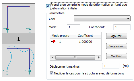 Utilisez cette boîte de dialogue pour générer un modèle de structure incluant les déformations dues au mode de flambement sélectionné ou à la combinaison linéaire des modes.