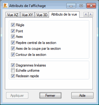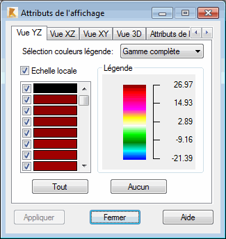 Dans la boîte de dialogue Attributs de l'affichage, vous pouvez définir l'échelle et les couleurs pour la présentation des contraintes dans des sections de barre individuelles.