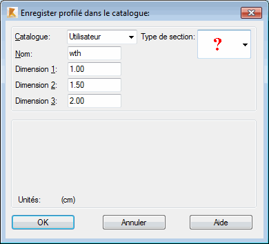 Les unités indiquées dans la partie inférieure de la boîte de dialogue concernent le type de section (elles sont données en unités courantes des dimensions de la section).