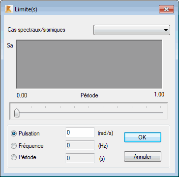 Le champ Cas spectraux/sismiques affiche tous les cas d'analyses sismiques et spectrales définis pour l’analyse modale sélectionnée. Après la sélection d’une analyse spectrale ou sismique, le spectre correspondant s'affiche dans le champ approprié.