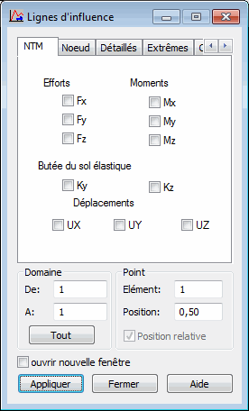 Utilisez la boîte de dialogue Lignes d'influence pour créer des lignes d'influence pour une quantité sélectionnée.