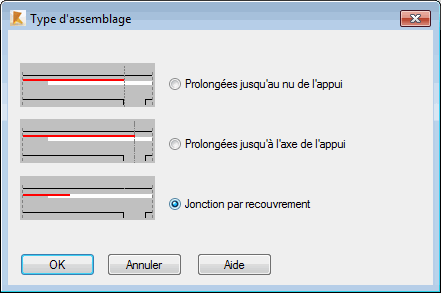 Les options qui se trouvent dans la boîte de dialogue ci-dessus concernent la façon de générer l’extrémité de l'acier de montage dans la travée d’une poutre BA :