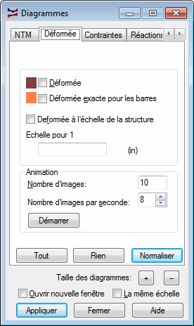 Vous pouvez sélectionner le mode d'affichage de la déformation de la structure, grâce à la présence de charges dans cette boîte de dialogue.