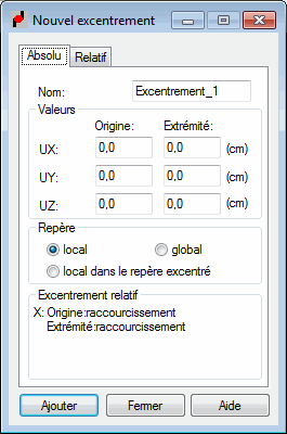 La boîte de dialogue Nouvel excentrement se compose de deux onglets :
