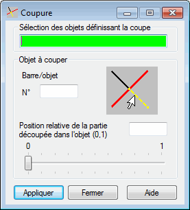 - Indiquez la partie de la barre ou de l’objet qui doit être découpée (saisir les coordonnées ou les indiquer sur l’écran graphique).