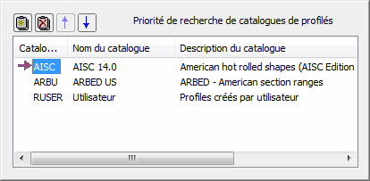 Les bases de données de sections actuellement actives sont affichées dans cette boîte de dialogue. Organisez la liste à l'aide des outils suivants :