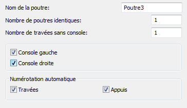 La partie supérieure de la boîte de dialogue présente les informations relatives au nom de la poutre et à la longueur de la travée (ces champs ne sont pas disponibles dans cette boîte de dialogue).