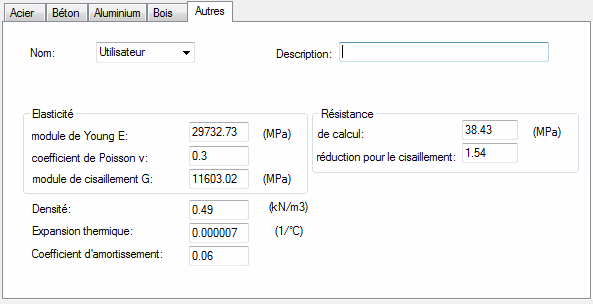 - Coefficient d'amortissement - indique le coefficient d'amortissement du matériau défini par l'utilisateur. Ce coefficient est utilisé pour l’analyse dynamique des structures.