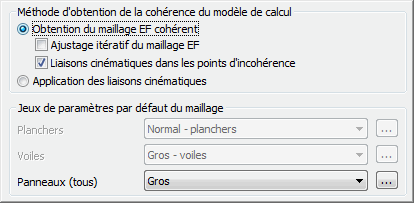 Les options permettant d'obtenir la cohérence du maillage généré par éléments finis sont disponibles dans la partie supérieure de la boîte de dialogue.