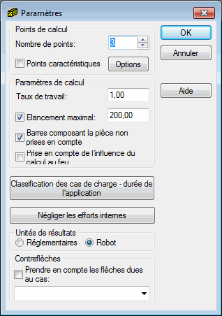 Dans cette boîte de dialogue, vous pouvez définir les paramètres de calculs suivants :