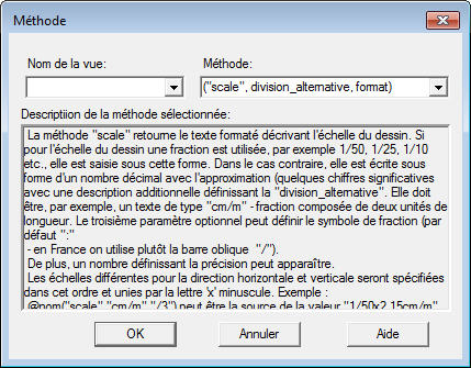 La boîte de dialogue Méthode se présente comme illustré ci-dessous. Elle contient une liste des méthodes disponibles, accompagnée des descriptions appropriées. En outre, vous devez spécifier le libellé de la vue dans laquelle la méthode sera appliquée.