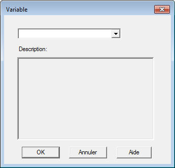 Les boîtes de dialogue pour les variables et les fonctions sont identiques. Elles contiennent une liste de variables ou de fonctions accessibles accompagnées d'une description de la variable/fonction sélectionnée. Vous pouvez également ajouter une variable (fonction), qui n'est pas incluse dans la liste. Une fois le bouton <Entrée> activé, le texte est inséré à l'endroit où le curseur a été placé dans le champ Expression de l'onglet Propriétés, dans la boîte de dialogue Propriétés du texte.