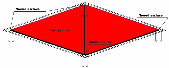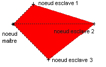 Par exemple, les déplacements linéaires peuvent être bloqués, mais les rotations peuvent être libres. Le premier noeud est nommé le noeud maître et les autres sont les noeuds esclaves.