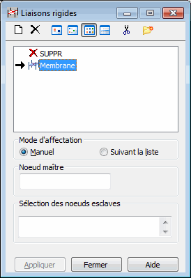 La boîte de dialogue Liaisons rigides dispose des éléments suivants :