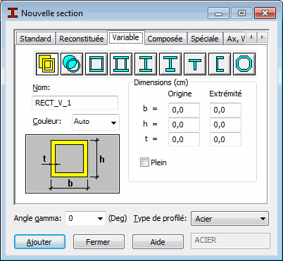 Toutes les options sont similaires à celles de l’onglet Paramétrique. Une seule différence : vous devez saisir les dimensions de la section aux deux extrémités de la barre.