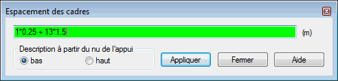 Cette option sert à modifier manuellement l’espacement des cadres (armatures transversales du poteau). L’option est disponible après un clic sur la commande Armatures / Espacement des cadres dans le menu.