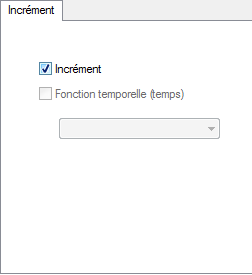 La boîte de dialogue suppose que la forme illustrée ci-dessous après la sélection de l'option Incrément (temps) disponible dans la liste de sélection Fonctions de la boîte de dialogue Définition des diagrammes.