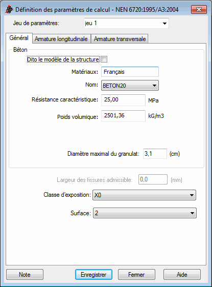 L'onglet Général de la boîte de dialogue Définition des paramètres de calcul pour la norme NEN, est présenté sur la figure ci-dessous :