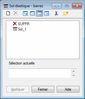 La partie supérieure de la boîte de dialogue Sol élastique - barres regroupe les icônes suivantes :