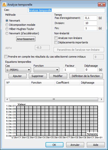 Coefficient - Coefficient multiplicateur de la valeur de la fonction temporelle pour un cas de charge donné, la valeur par défaut du coefficient est 1.0.