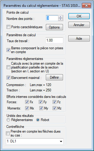 Dans cette boîte de dialogue, les paramètres de calcul suivants peuvent être définis :