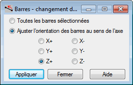 - Toutes les barres sélectionnées - permet d’inverser le sens de l’axe x local des barres sélectionnées.