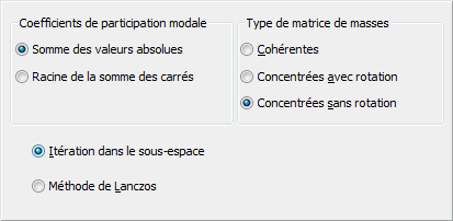 Vous pouvez définir les paramètres d’analyse modale suivants :