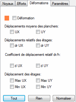 Après la sélection de l'onglet Déformations, la boîte de dialogue Diagrammes - bâtiments prend la forme représentée ci-dessous :