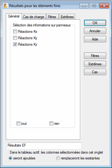 Réactions KZ – Une valeur de la réaction KZ est affichée. Elle est affichée en tant que somme (intégrale) de la butée du sol élastique pour le panneau situé sur le sol élastique. La valeur est constante pour le panneau entier.