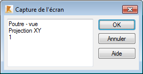 Le nom par défaut comprend le nom de la vue pour laquelle la capture de l'écran a été effectuée, le plan de projection et le numéro.