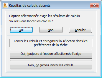 - Indiquez le comportement du programme au moment où il vous invite à sélectionner une option qui exige les résultats alors qu'aucun calcul n’a encore été effectué.