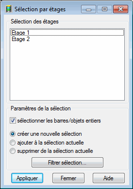 La boîte de dialogue permet de définir les paramètres de sélection par étages suivants :