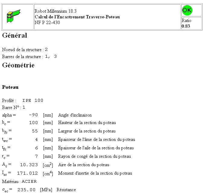 Une fois les calculs de l’assemblage terminés, le logiciel affiche la note de calcul contenant les données sur l’assemblage et les résultats de calculs (onglet Résultats).
