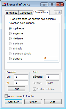 - Moyenne - La ligne d’influence est créée pour la surface moyenne des éléments finis.