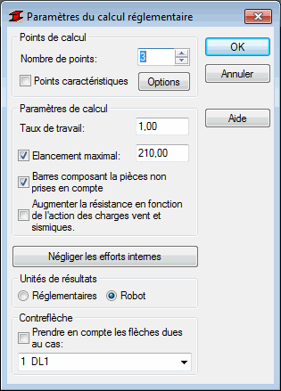 Dans cette boîte de dialogue, vous pouvez définir les paramètres de calculs suivants :
