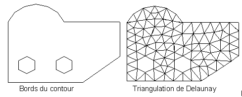 Vous pouvez utiliser la triangulation de Delaunay pour créer un maillage EF pour toute surface 2D. Les ouvertures qui se trouvent à l'intérieur du domaine doivent être définies comme des bords du contour. Elles ne seront pas prises en compte lors de la création du maillage par éléments finis (EF). Une fois que vous avez sélectionné la méthode de Delaunay, choisissez alors le contour pour lequel sera créé le maillage.
