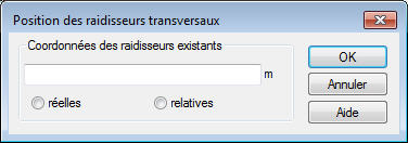 Dans la boîte de dialogue, l'utilisateur peut indiquer la répartition des raidisseurs le long de la poutre (exprimée en coordonnées réelles ou relatives, par rapport à la longueur de la poutre).