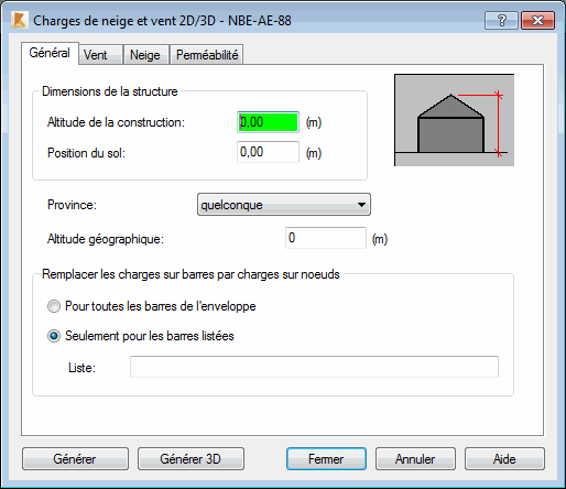 Après l’ouverture de la boîte de dialogue Charge de neige et vent et un clic sur l’onglet Général, la boîte de dialogue suivante s'affiche.