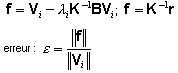 Equation du problème propre : K Vi - λ B Vi = 0 Vecteur résiduel : ri = K Vi - λi B Vi |