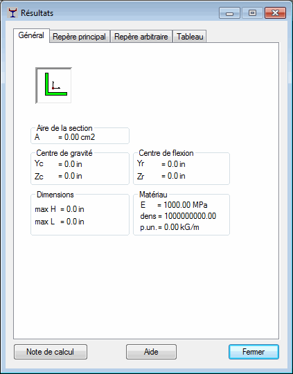 Cette option lance le calcul des propriétés géométriques de la section à parois fines définie.