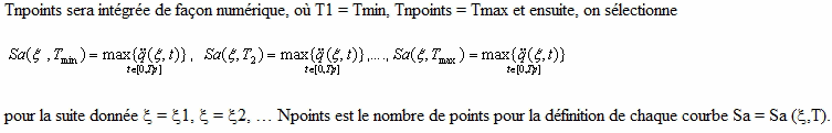 Tp - durée de l’enregistrement du séisme, ω = 2π/T - pulsation pour Tmin ≤ T ≤ Tmax, paramètre d’amortissement ξ- (exprimé en % par rapport à l’amortissement critique), F(t) - diagramme d’accélération donné.