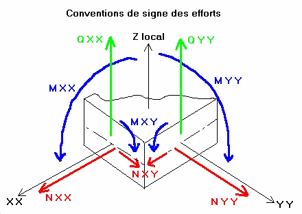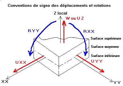Les conventions de signe pour les éléments finis surfaciques sont représentées sur les figures ci-dessous.