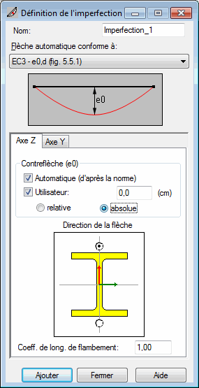 L’option sert à définir un nouveau type d’imperfection géométrique. Ouvrez la boîte de dialogue Définition de l'imperfection en cliquant sur