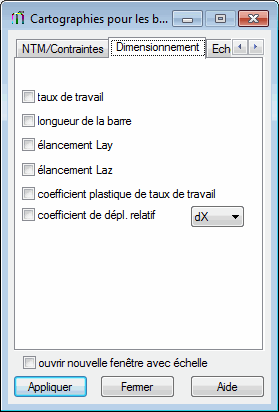 Cliquez sur l'onglet Dimensionnement, dans la barre de dialogue Cartographies pour les barres, pour afficher les mesures suivantes :