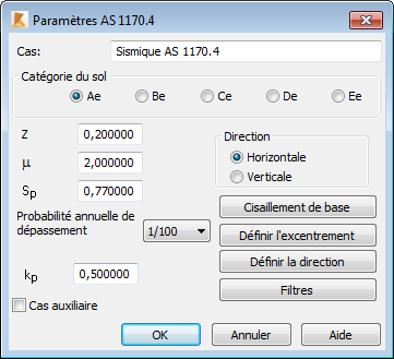 Paramètres de l’analyse sismique (norme australienne AS-1170.4)