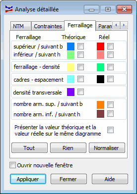 L’onglet Armature de la boîte de dialogue Analyse détaillée permet de quantifier l'armature pour la présentation.