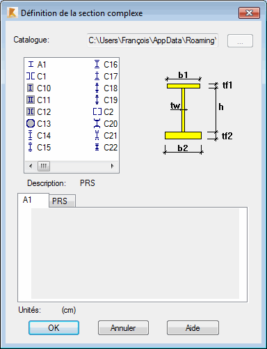 L’option permet d'accéder à une base de données pour définir une section complexe. Vous pouvez définir facilement des sections complexes relativement compliquées en définissant les dimensions appropriées du type de section sélectionné.