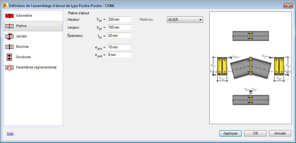 L'onglet n'est disponible que pour les assemblages boulonnés.